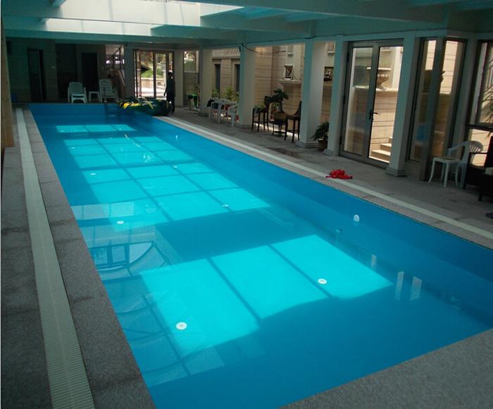 池水的澄清度是泳客最直接關心的,晶瑩剔透的池水令人愉快.一般室內泳池都有沙缸過濾系統,水中的懸浮顆粒、有機物被絮凝澄清劑凝結成較大結實的絮凝體而被沙缸中的介質攔截.所以絮凝體越大越結實就越容易被沙缸濾除.