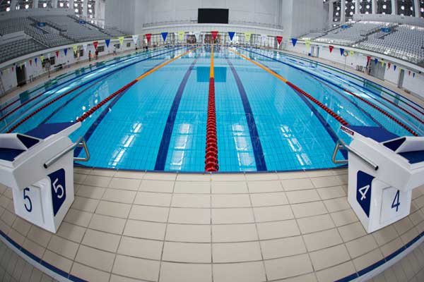 2、泳道寬度2.5m,最外一條分道線距池邊至少500mm;